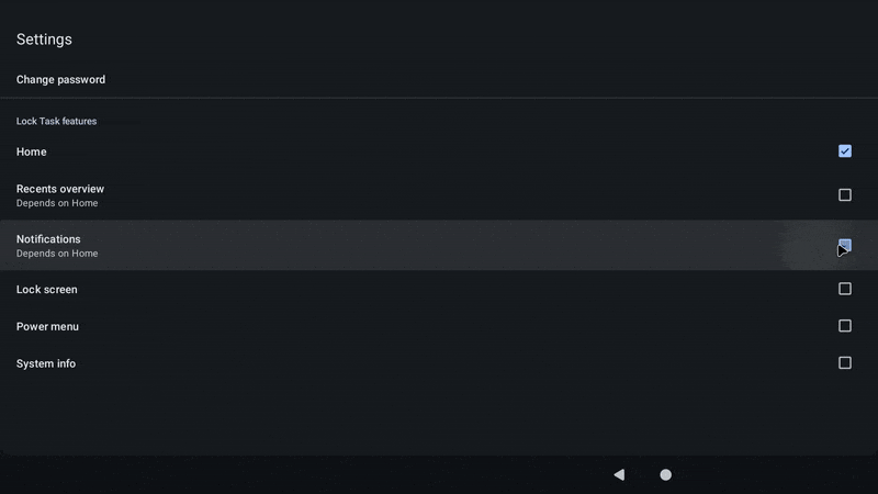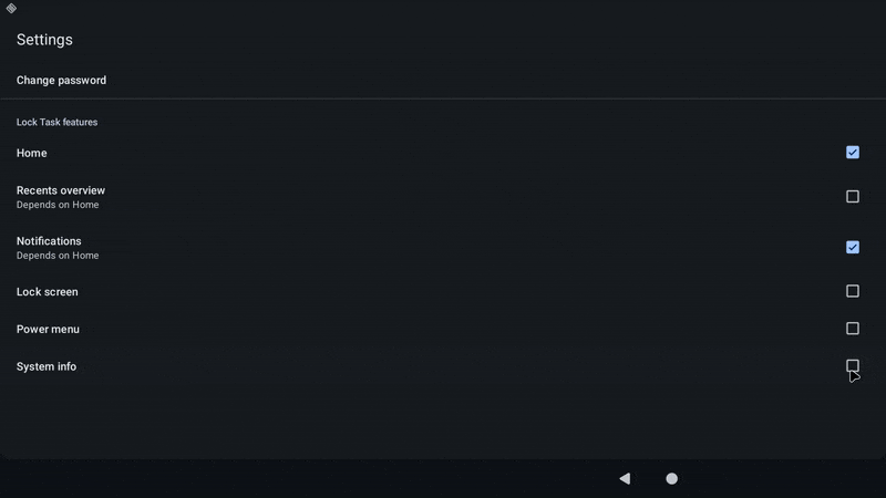 Clicking on the sprocket from the home screen will launch the Restricted Launcher Settings screen: