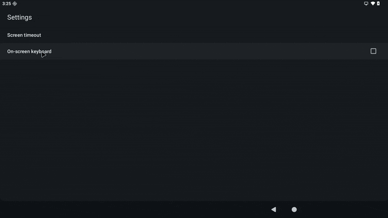 The system settings page allows you to set the kiosk screen timeout and enable/disable the on-screen keyboard (if your device has a secondary keyboard attaches, this override may be needed):